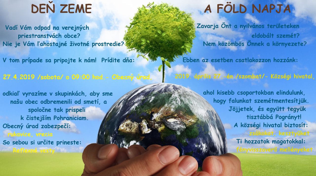 HU: Április 22.-e a Föld Napja. Inspirációt kaptunk a szomszédos községekből, és úgy döntöttünk, hogy idén mi is egy közös kis brigáddal eltávolítjuk környezetünkből a sok fölöslegesen eldobott szemetet! Találkozunk tehát, április 27.-én a községi hivatal előtt, ahol csoportokba szétoszlunk és meghatározzuk az útvonalakat.