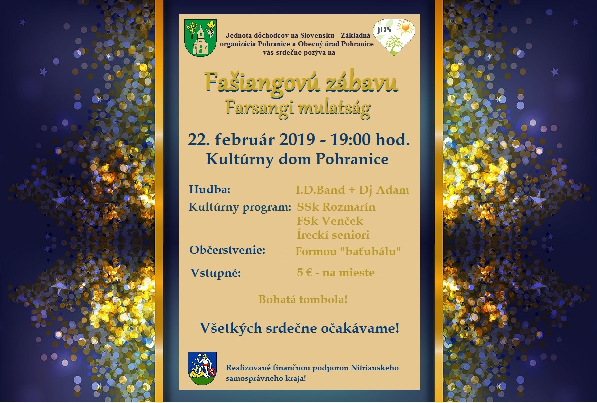 SK: Jednota dôchodcov na Slovensku - Základná organizácia Pohranice v spolupráci s Obecným úradom Pohranice Vás srdečne pozývajú na Fašianogvú zábavu!