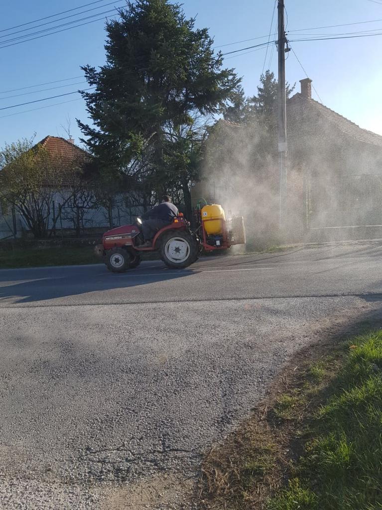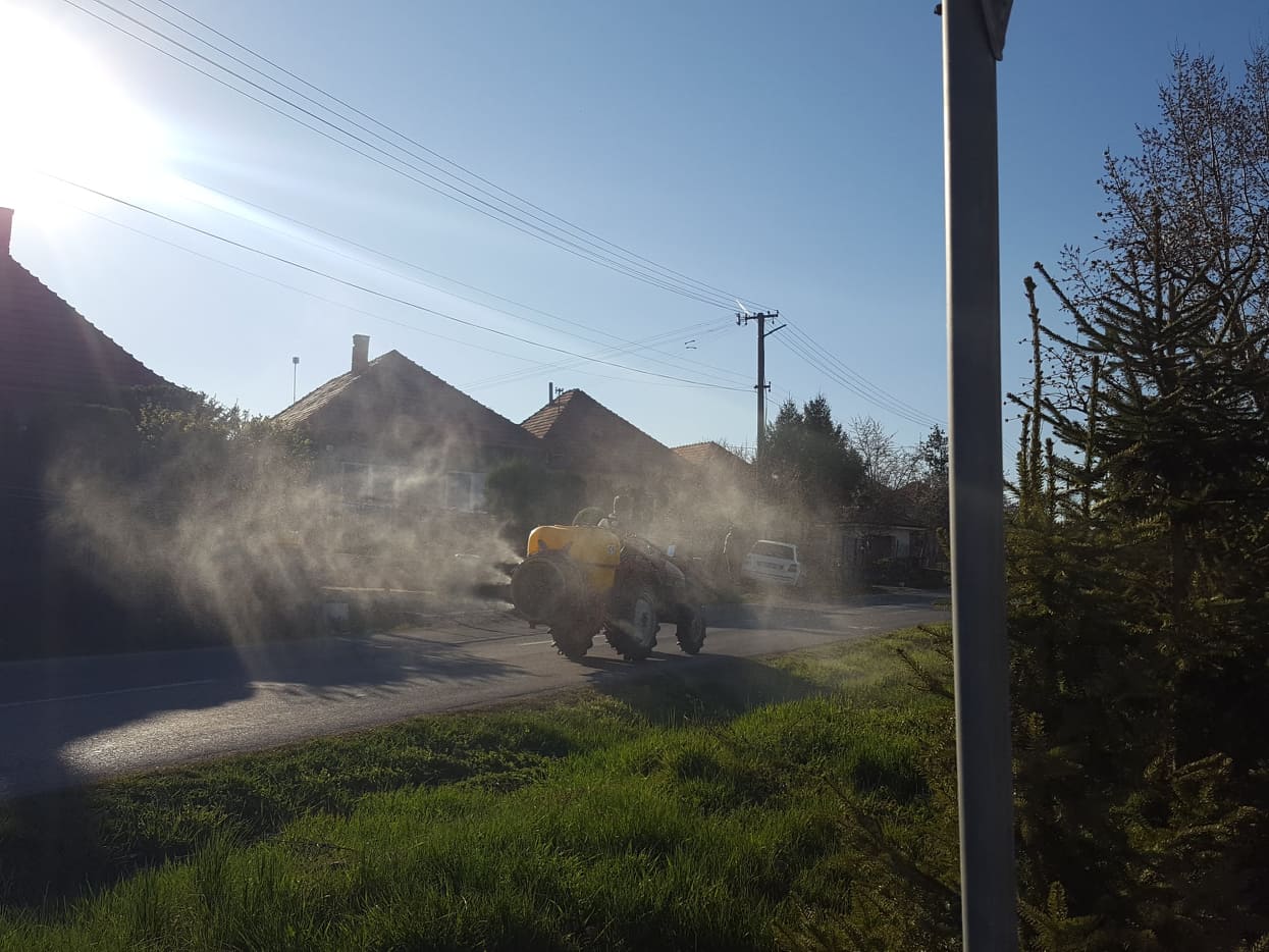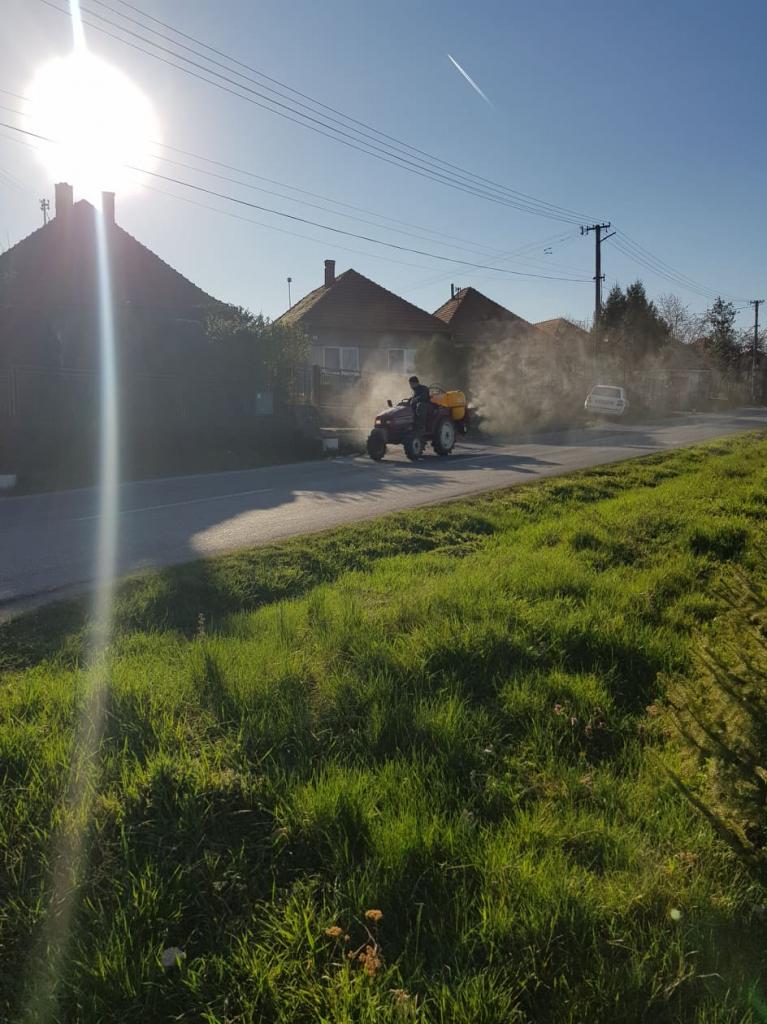 HU: Tegnap este fertőtlenítettük a közterületeket. Köszönjük a helyi vállalkozónak a fertőtlenítő-szert, és köszönet jár polgárunknak a fertőtlenítőszer alkalmazásában nyújtott segítségét.