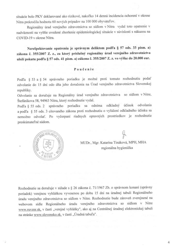 Takýto postup odporučil Regionálny úrad verejného zdravia so sídlom v Nitre. Jeho pracovníci vyhodnotili epidemiologickú situáciu a zaradili celý okres do červenej zóny.
