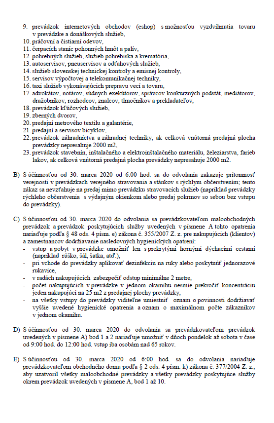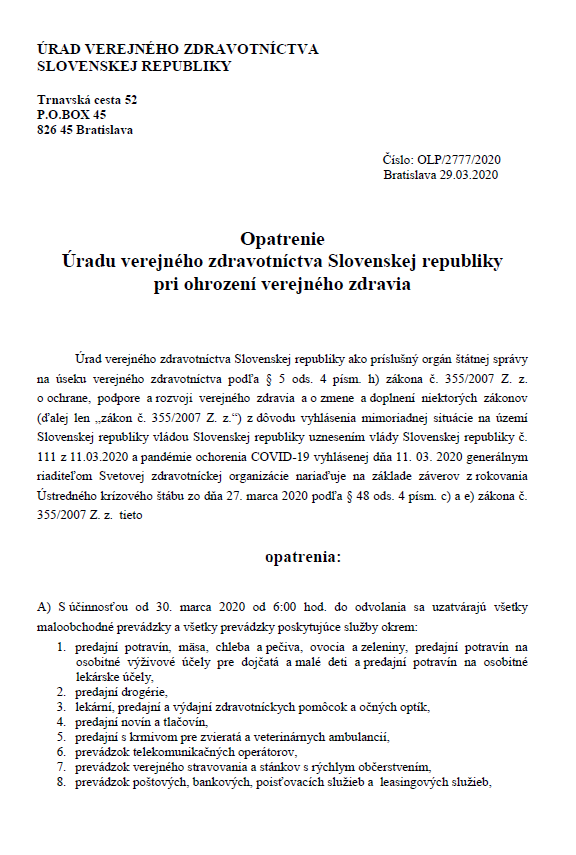 SK: Zatvorenie prevádzok od 30. marca 2020