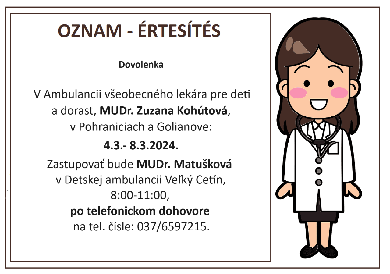 08:00 – 12:00 13:00 – 17:00 Štvrtok / Csütörtök: