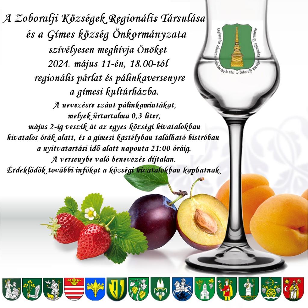 HU: A Zoboralji Községek Regionális Társulása szeretettel meghívja Önöket a regionális pálinkakóstolóra Gímesre