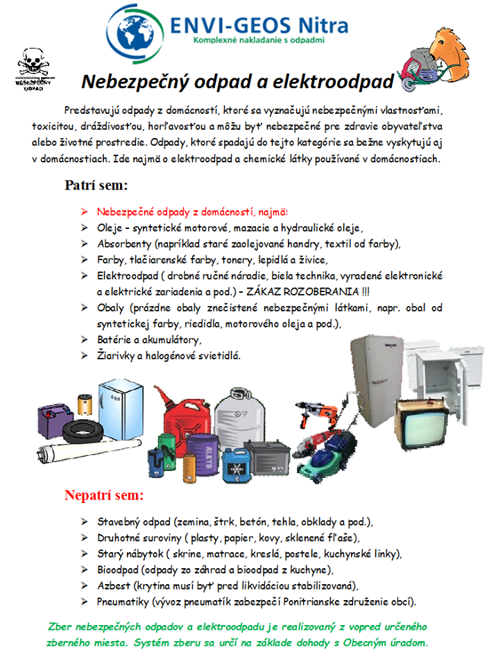SK: V sobotu, 10. novembra 2018 sa uskutoční zber nebezpečného odpadu a elektroodpadu. Čas zotrvania posádky na zbernom mieste v Pohraniciach je od 7:00 - 8:30 pred zdravotným strediskom. Bližšie info o tom, čo patrí do tohto zberu viď. nižšie.