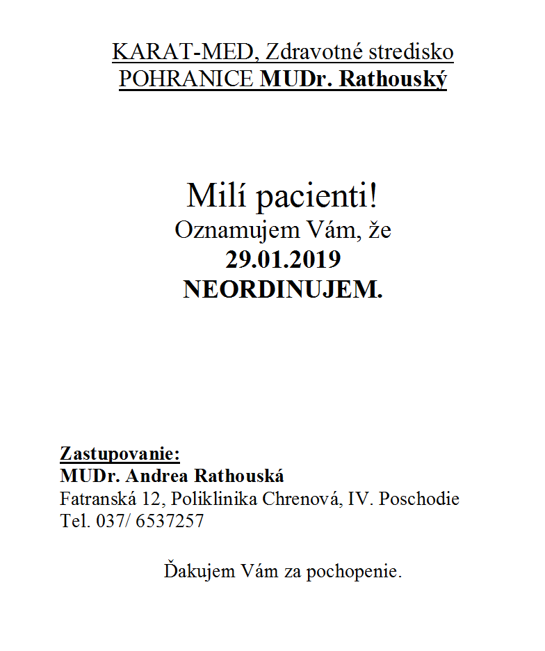 SK: Zastupovanie ambulancie všeobecného lekára.