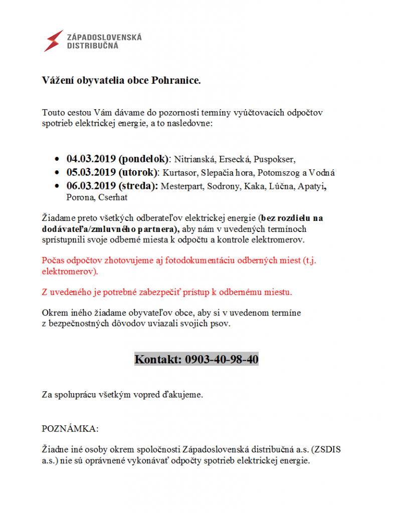Obecný úrad č. 185                 951 02 Pohranice                    IČO: 00308382                        DIČ: 2021252772                    Bankové spojenie: