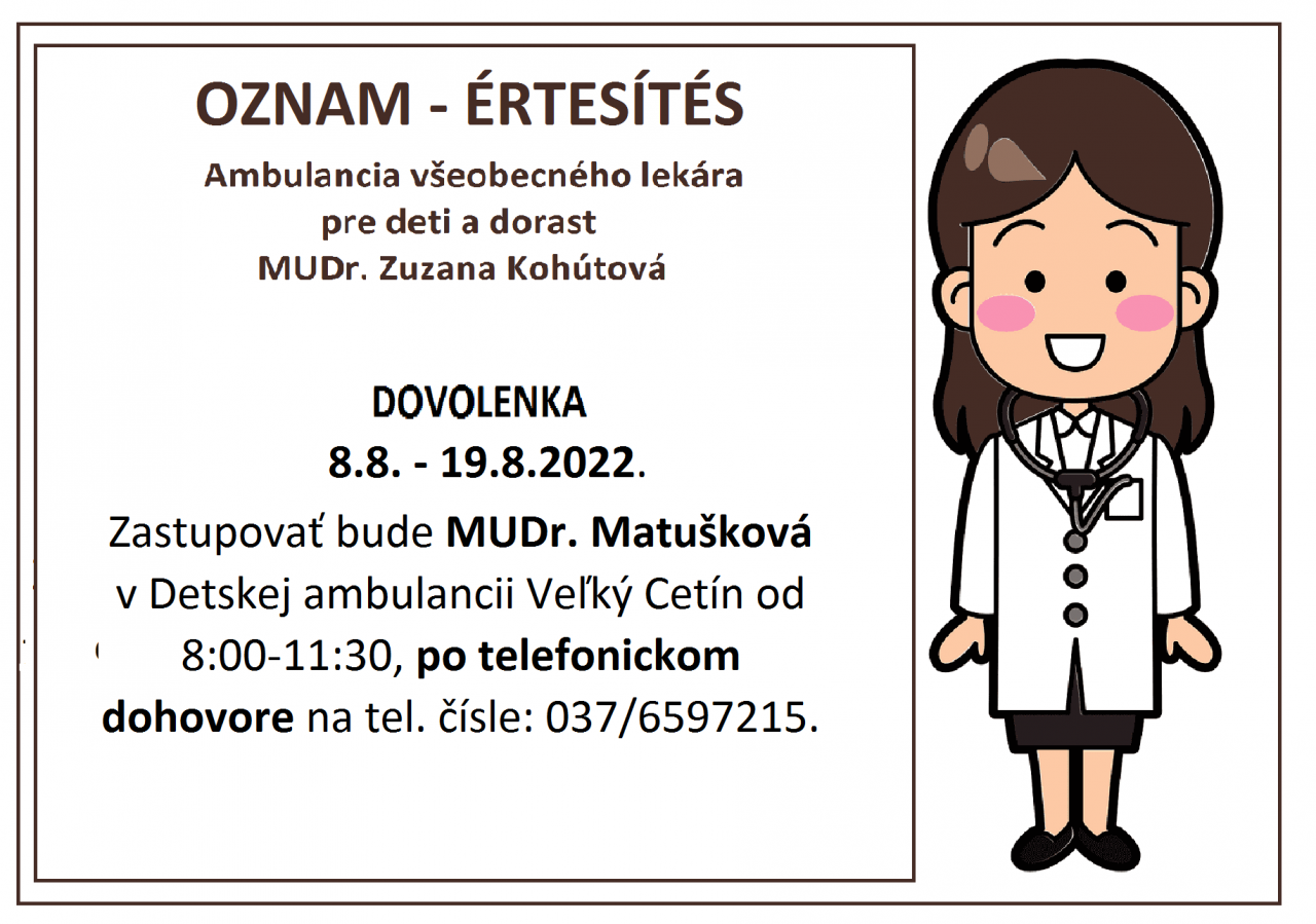 08:00 – 12:00    13:00 – 17:00 Štvrtok / Csütörtök: