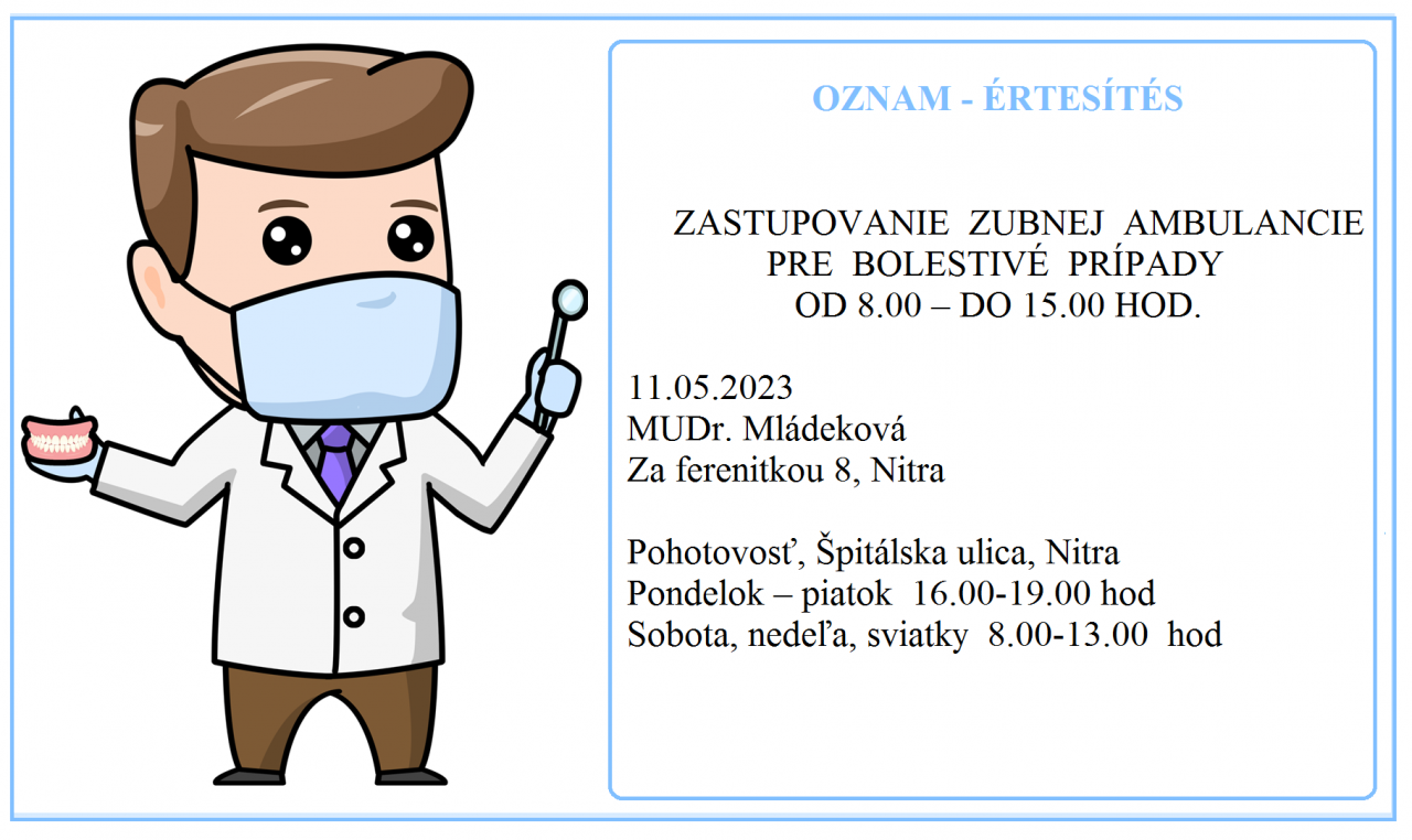 Pondelok / Hétfő: 08:00 – 12:00 13:00 – 15:00