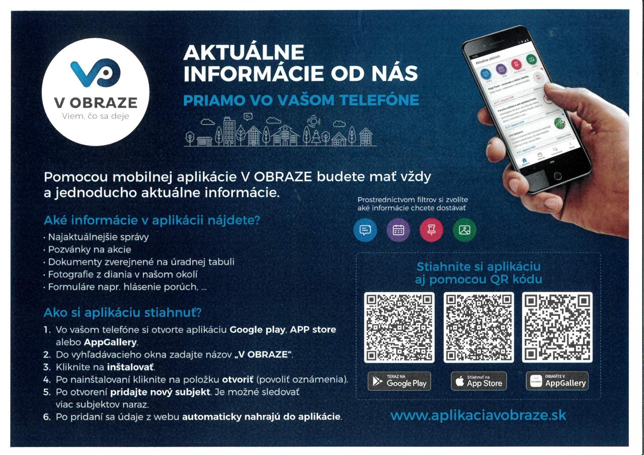 Sledujte informácie z nášho webu v mobilnej aplikácii - V OBRAZE.