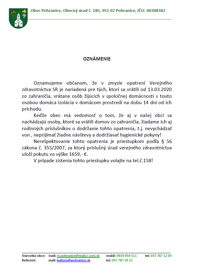 OBEC POHRANICE