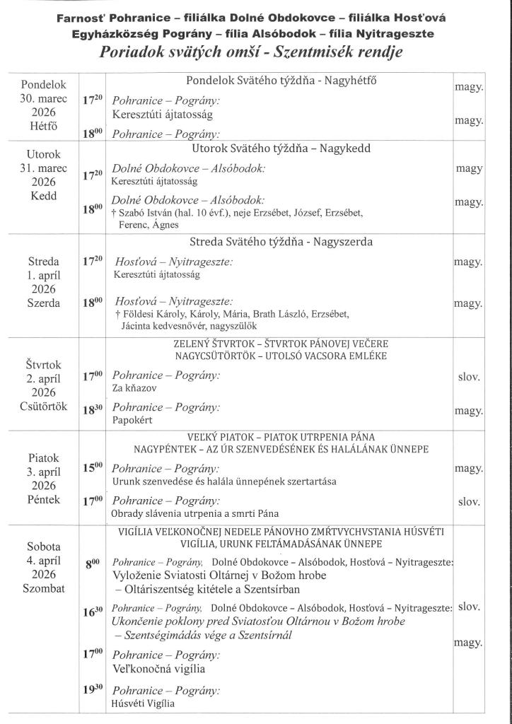 Piatok / Péntek: