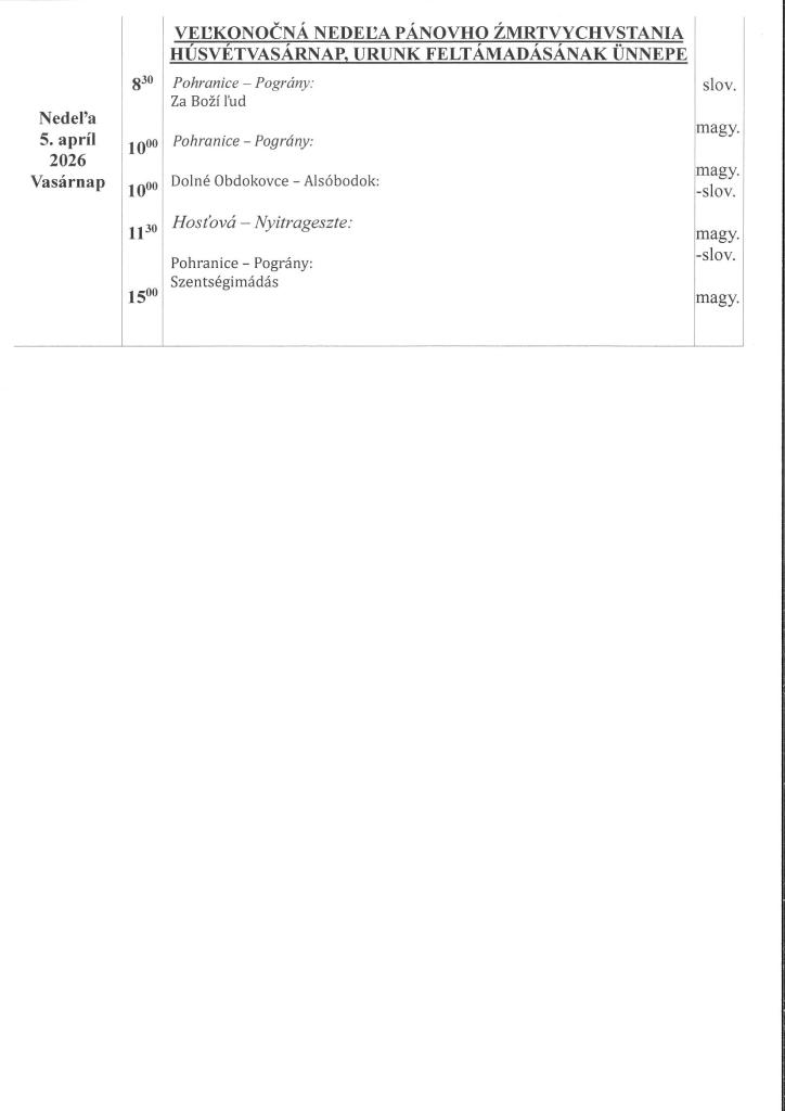 Štvrtok / Csütörtök: