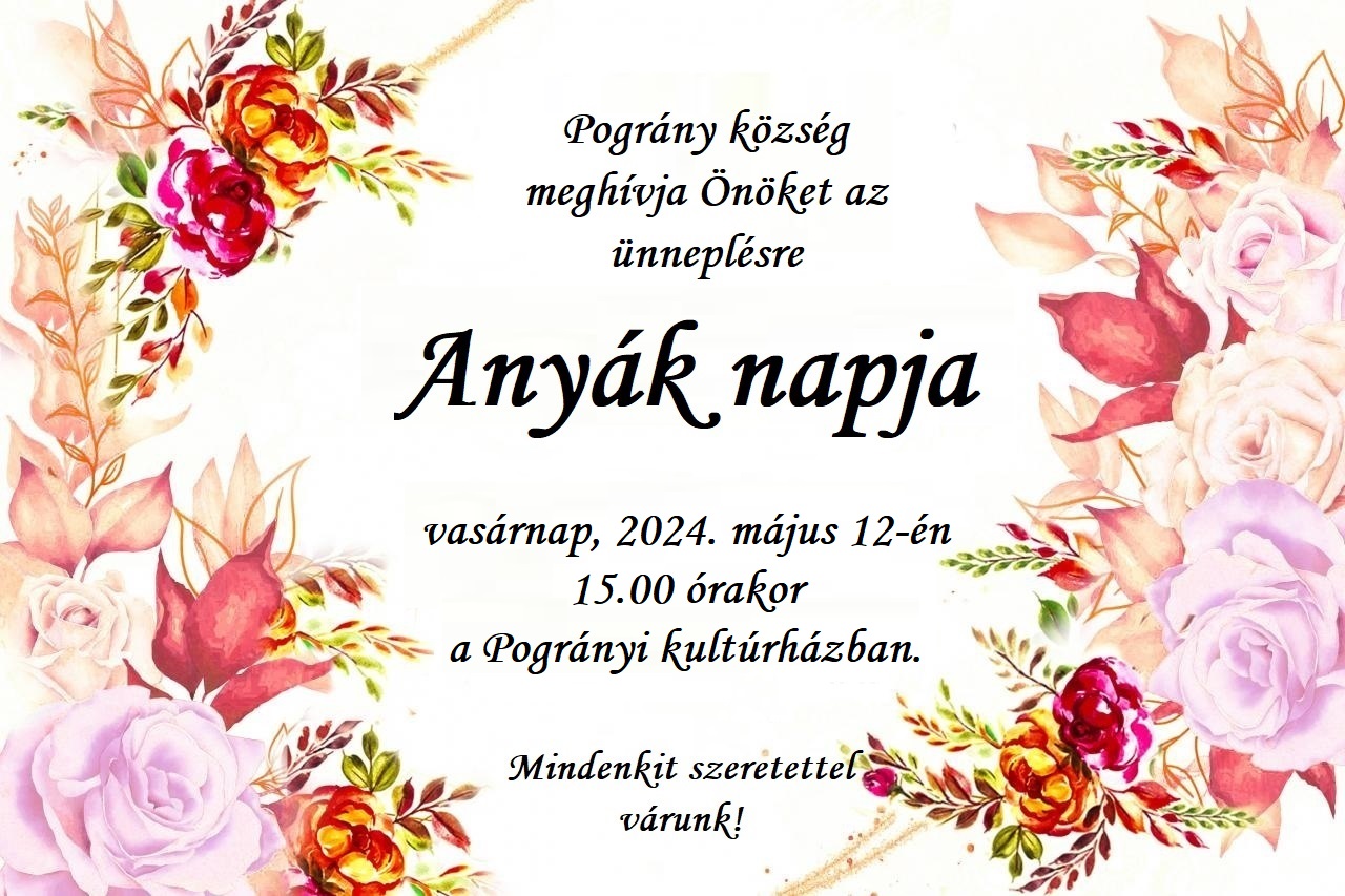 Pográny község meghívja Önöket az ünneplésre Anyák napja, vasárnap, 2024. május 12-én, 15.00 órakor a Pogrányi kultúrházban.