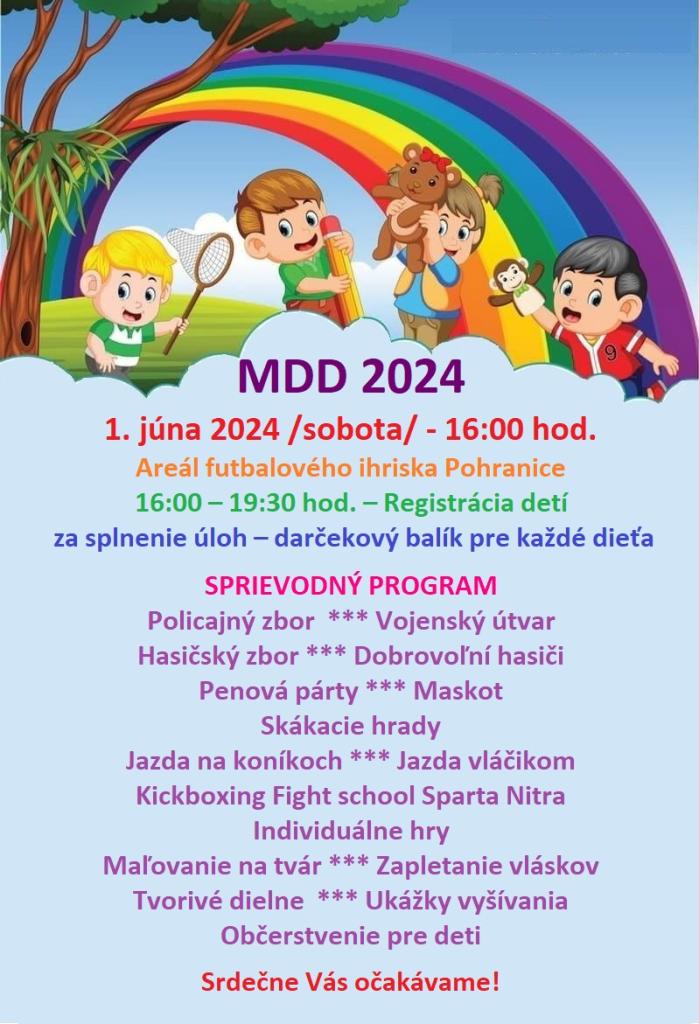 Srdečne pozývame všetky detičky osláviť ich veľký deň dňa 1. júna o 16:00 hod. na futbalové ihrisko v Pohraniciach.