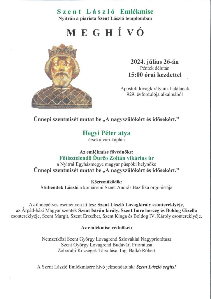 Pozvánka - Svätá omša na počesť sv. Ladislava