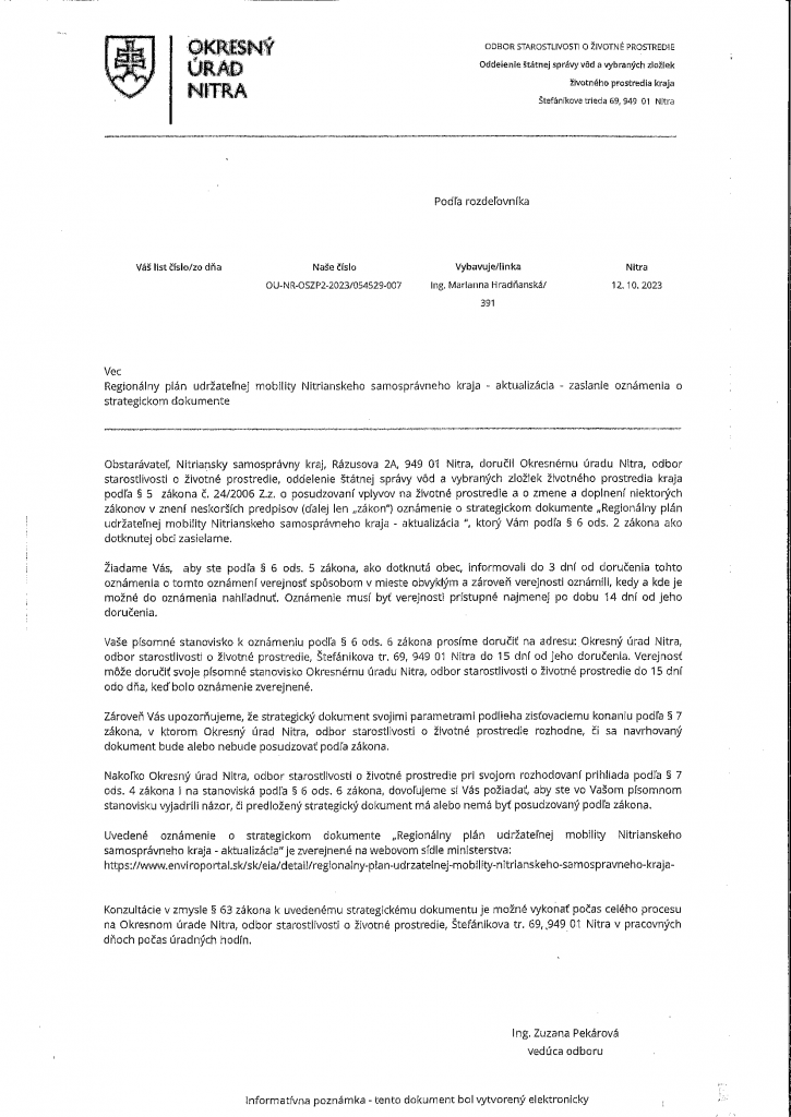 Regionálny plán udržateľnej mobility Nitrianskeho samosprávneho kraja - aktualizácia je zverejnené na webovom sídle ministerstva: http://www.enviroportal.sk/sk/eia/detail/regionalny-plan-udrzatelnej-mobility-nitrianskeho-samospravneho-kraja-.