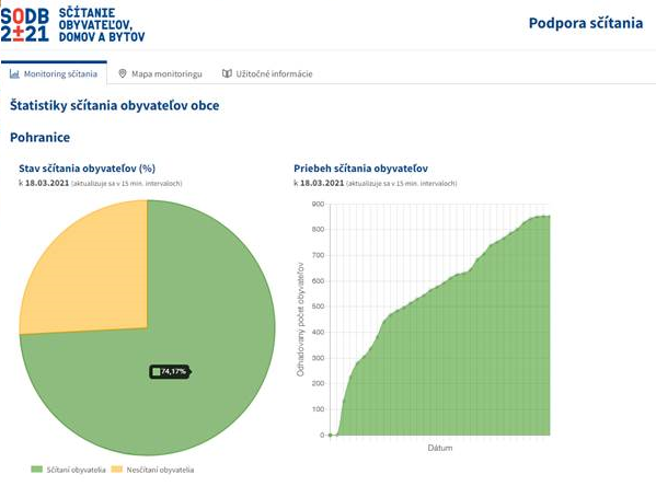 Sčítanie obyvateľstov v obci Pohranice - k 18. marcu 2021 je sčítaných 74,17 % obyvateľstva - čo je 848 ľudí.