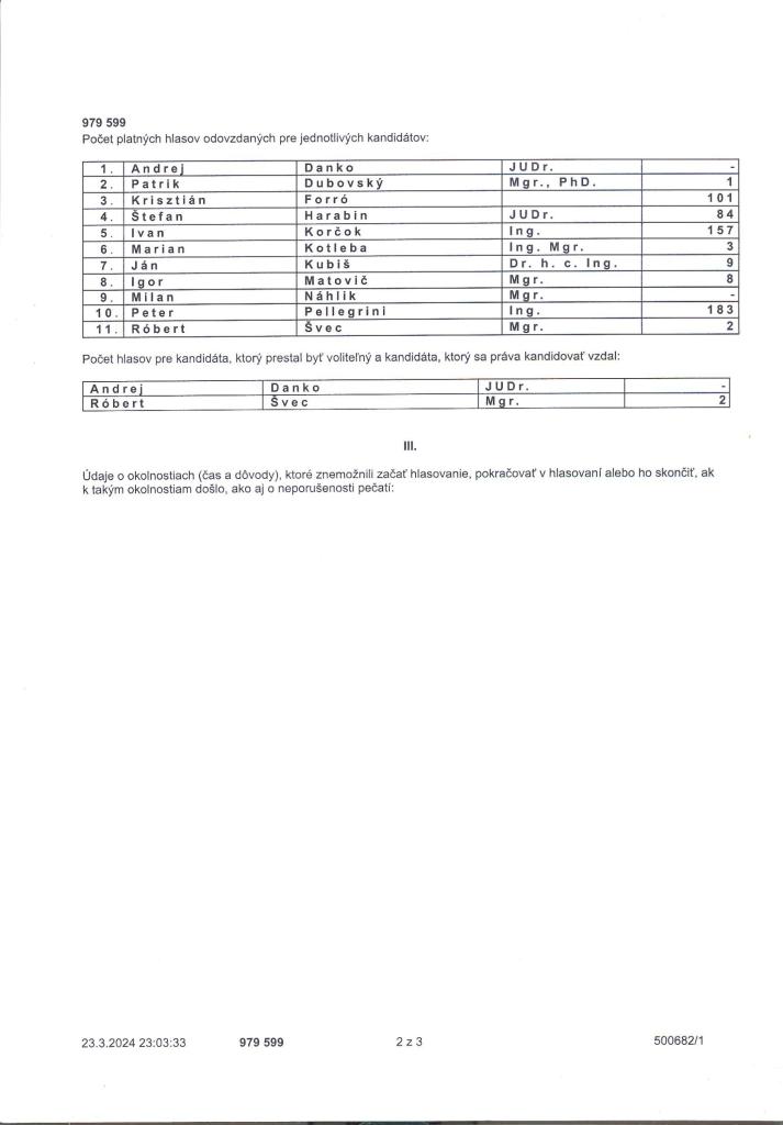 Oficiálne výsledky volieb Prezidenta SR v obci Pohranice, ktoré sa konali dňa 23.03.2024.