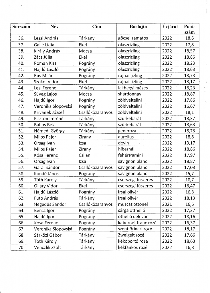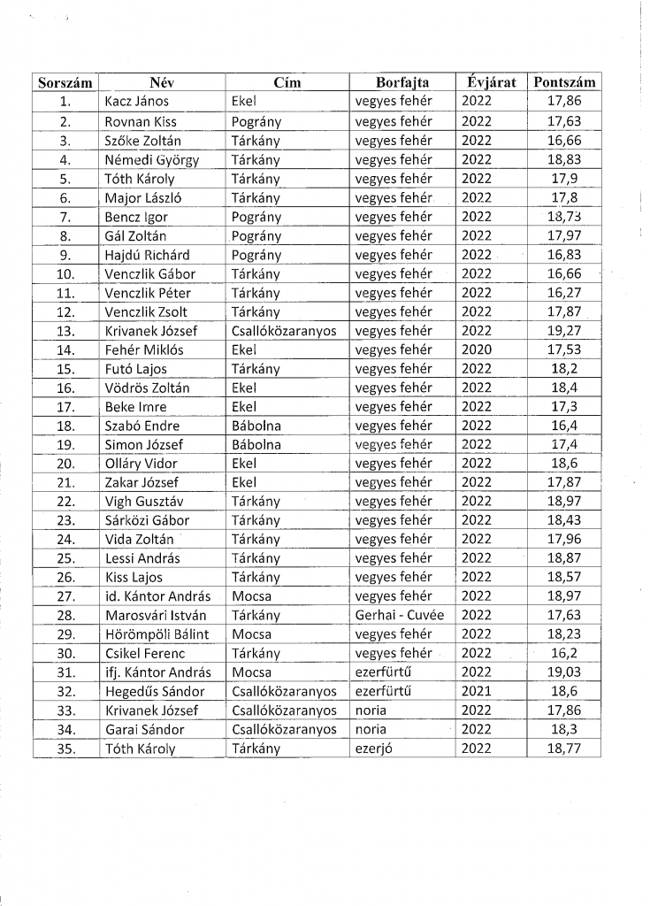 Výsledky ochutnávky vín v obci Tárkány - A tárkányi borkóstoló eredményei