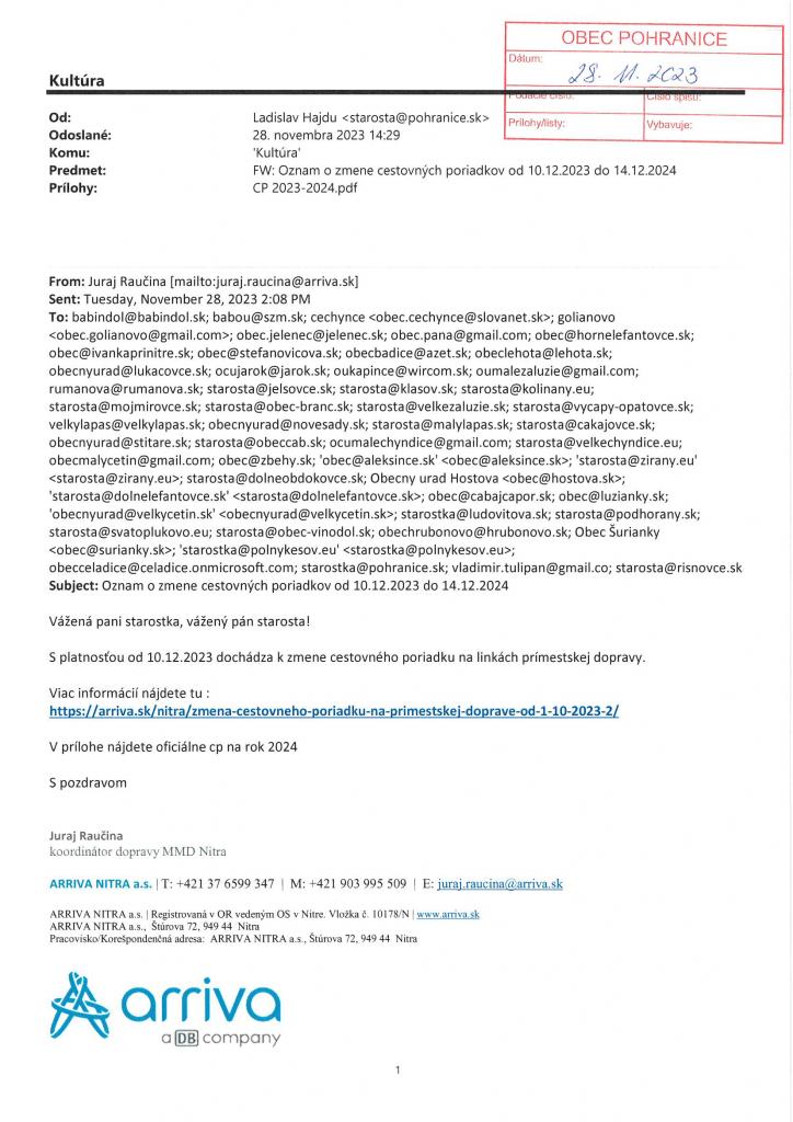 ???????? Zmena cestovného poriadku na linkách prímestskej dopravy s platnosťou od 10.12.2023
