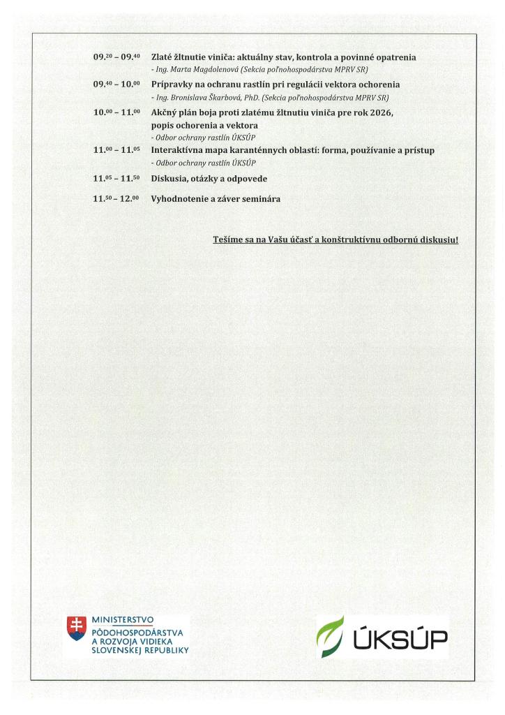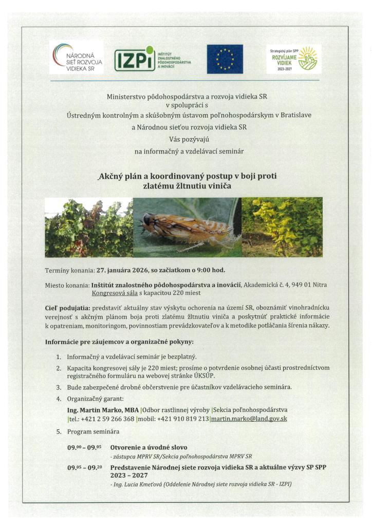 Pozvánka na odborný seminár od Ústredného kontrolného a skúšobného ústavu poľnohosp. v Bratislave, ktorý sa bude konať 27.01.2026 v Nitre, Akademická 4 so začiatkom o 9 hod.