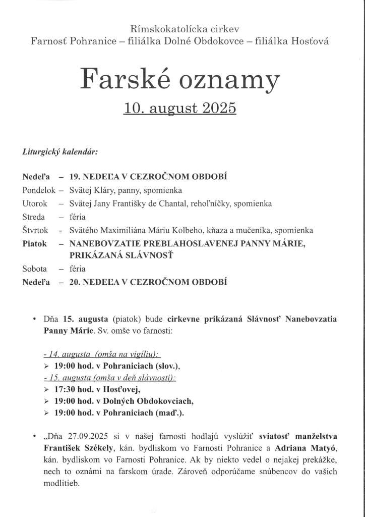 Oznamy - Farské oznamy na 33_kalendárny týždeň