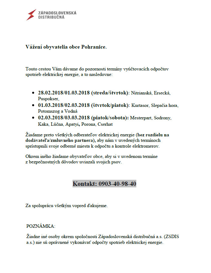 HU: A Západoslovenská distribučná ezúttal közli Önökkel a villanyórák írásánák időpontjait.
