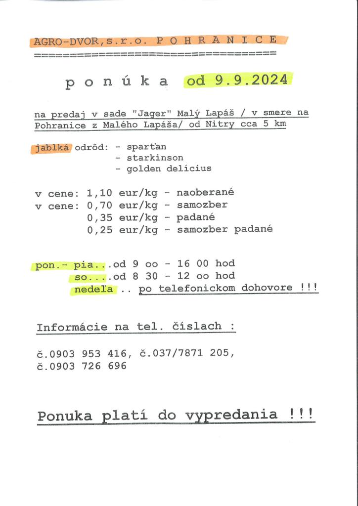 AGRO-DVOR - predaj jabĺk
