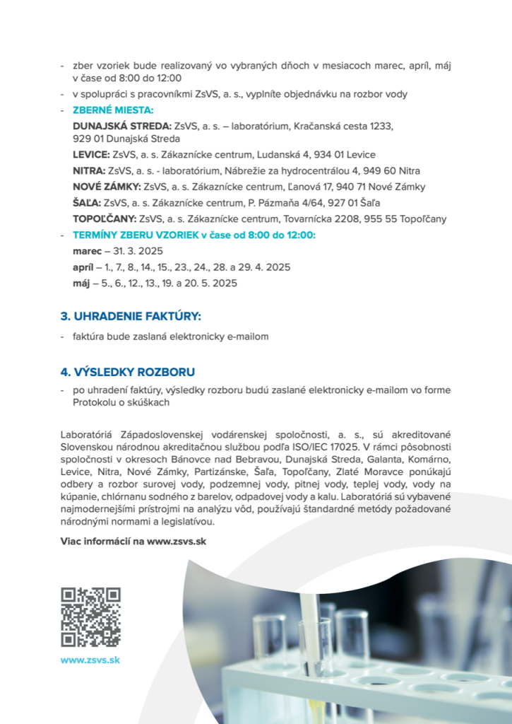 ZsVS, a.s. ponúka rozbor vody