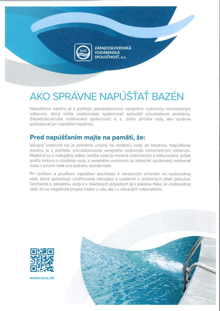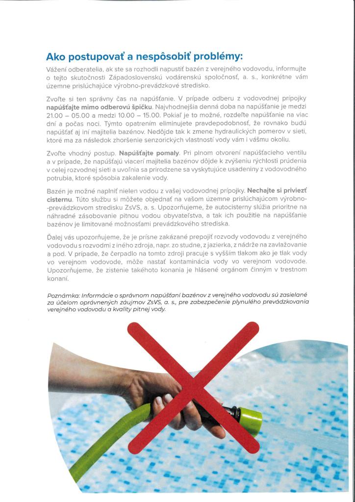 Informácie a pokyny od ZSVS - Ako správne napúšťať bazén