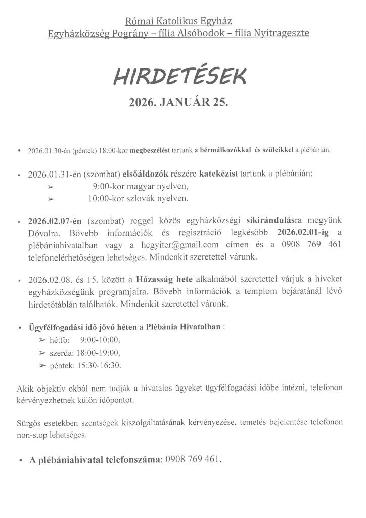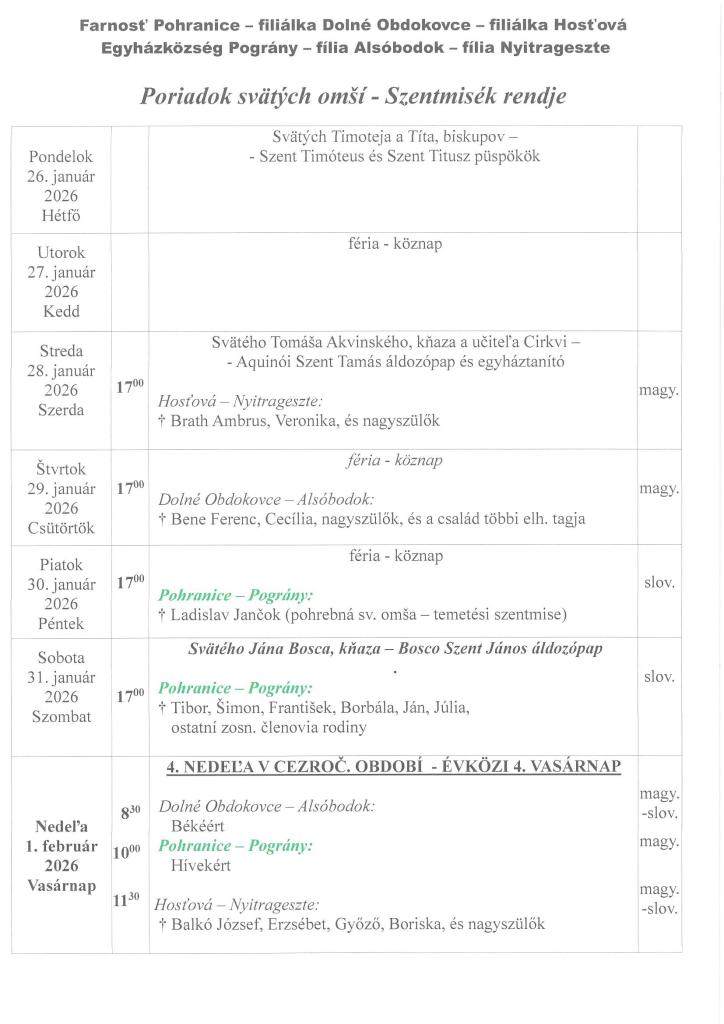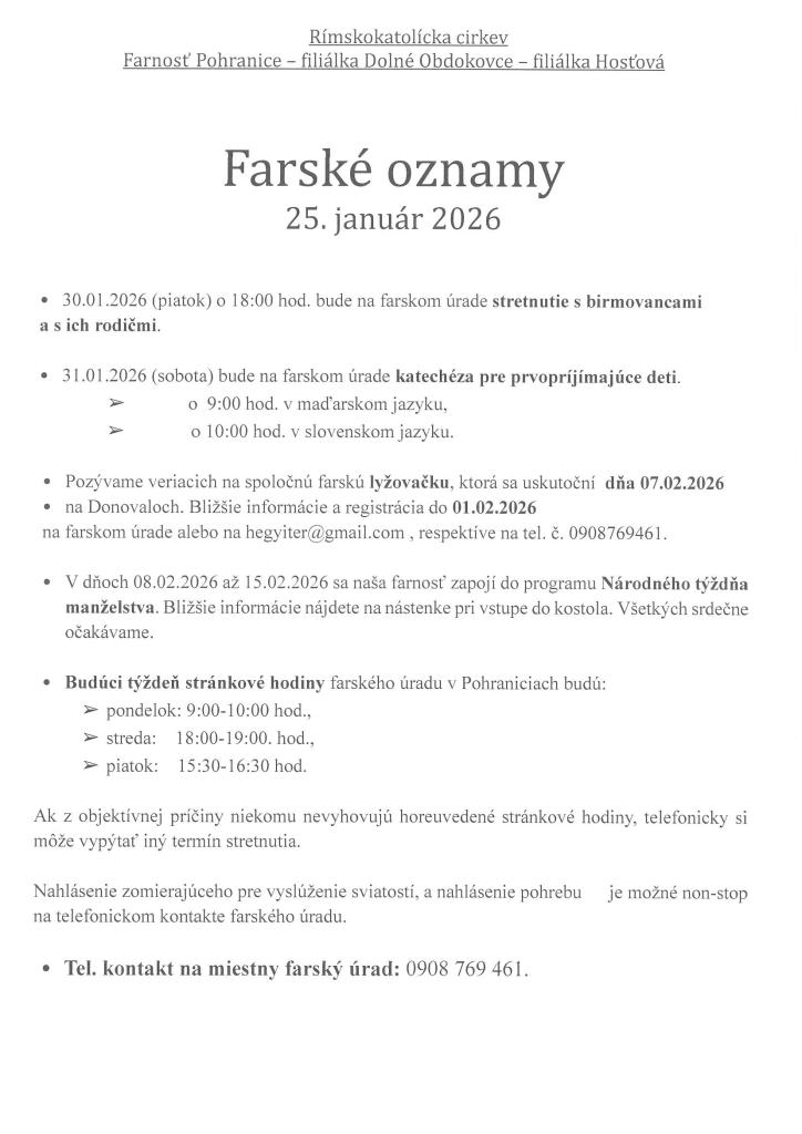 Farské oznamy - Plébániai hirdetések