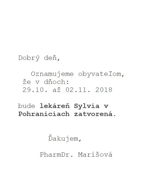 Oznamy - OZNAM - ÉRTESÍTÉS