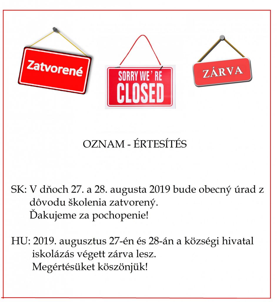 Oznam obecného úradu-A községi hivatal értesítése