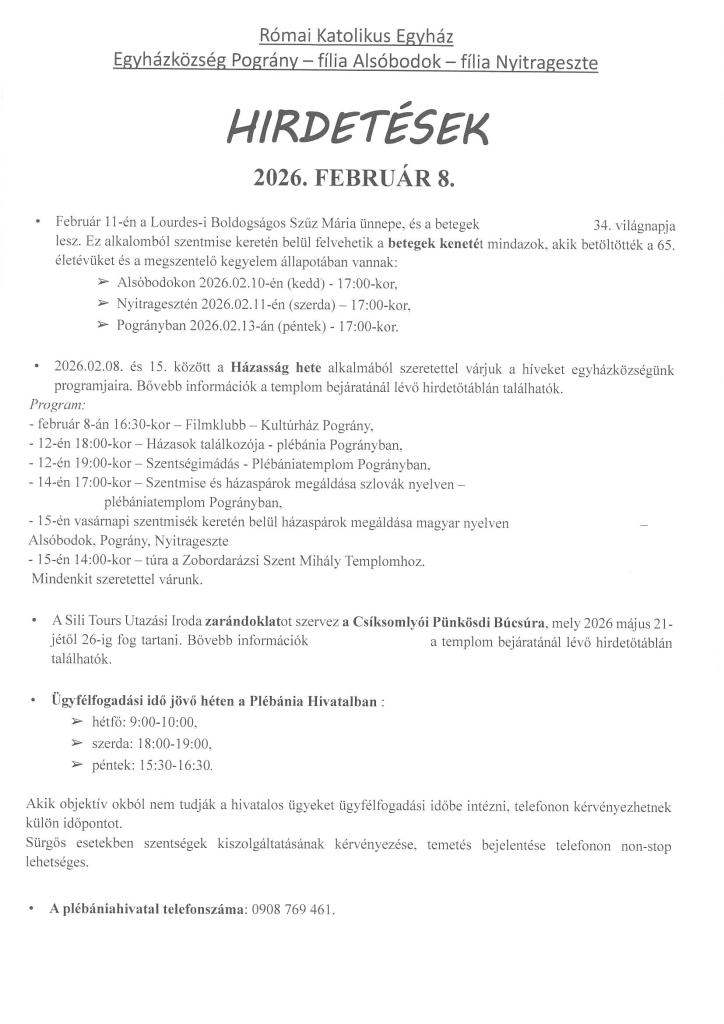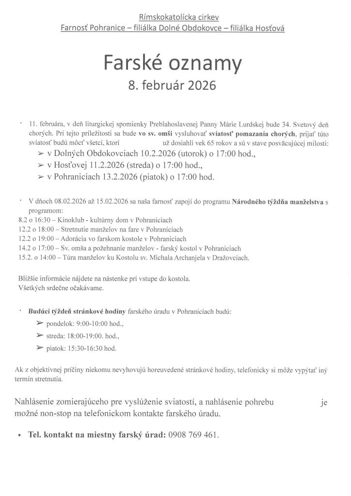 Farské oznamy - Plébániai hirdetések