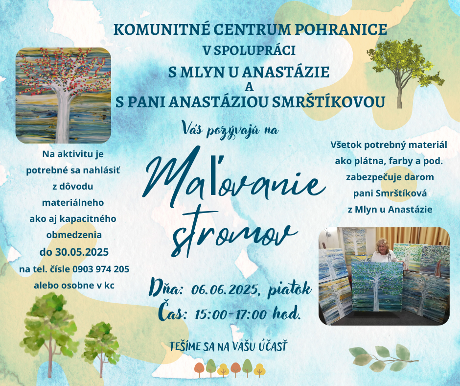 Pozvánka do Komunitného centra v Pohraniciach na Maľovanie stromov.