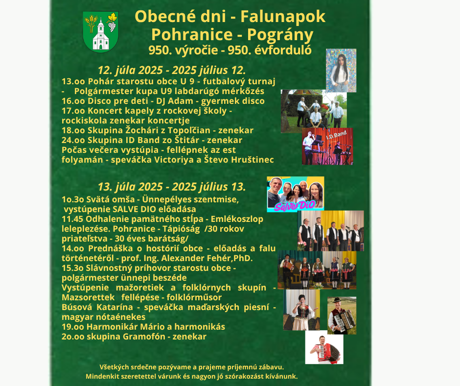 Pozvánka na obecné slávnosti - Meghívó a falunapok ünnepségre