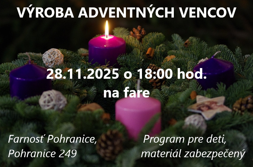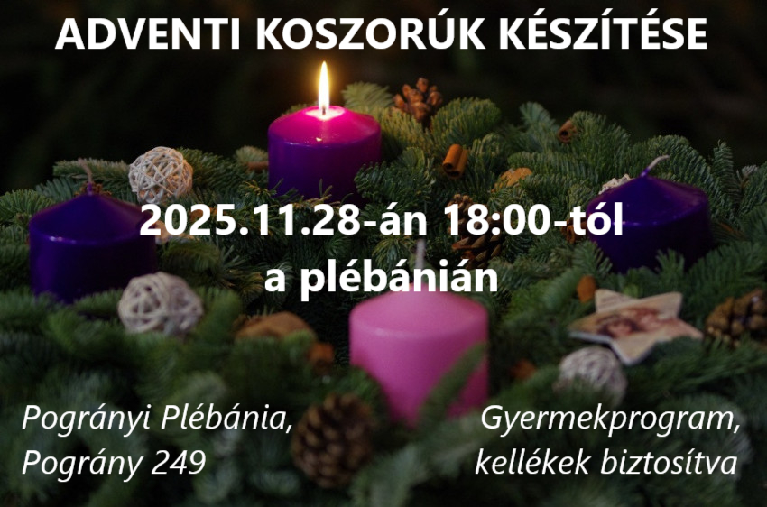 Pozývame Vás na výrobu adventných vencov 28. 11. 2025 na faru v Pohraniciach. Adventi koszorúk készítésére hívunk mindenkit 2025. 11. 28-án a Pográny-i plébániára.