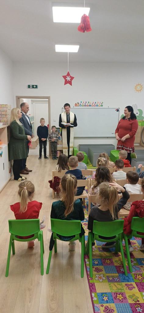 Slávnostné otvorenie a vysvätenie rozšírenia materskej školy. Ďakujeme pánovi farárovi za vysvätenie. Az óvoda bővítményének ünnepélyes megnyitója és felszentelése. Köszönjük a plébános úrnak a felszentelést.