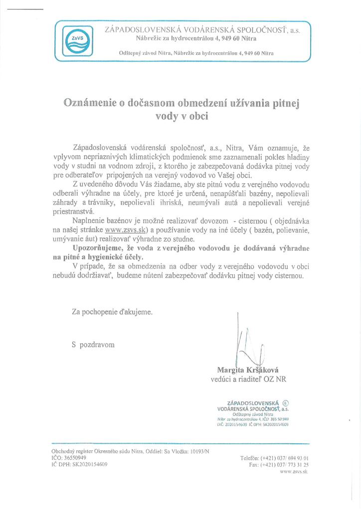 Opätovná výzva na obmedzenie odberu pitnej vody